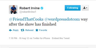 Update 8/10/12 – Robert Irvine answered some of the questions raised in this article via Twitter. See his replies here.